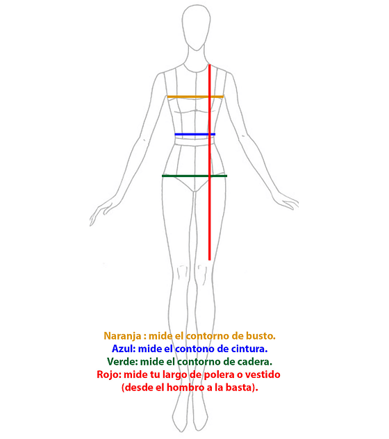 1. Elige tu talla (si es a medida busca la foto que especifica como medir contorno de busto, contorno cintura y contorno cadera)